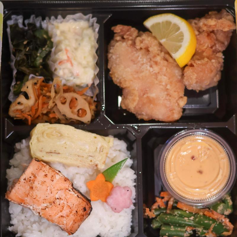 Japanese Fried Chicken & Shio-koji Marinated Salmon with side dishes