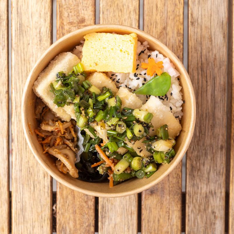 served with vegetable pickles in soy sauce